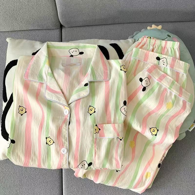 2025新型夏の薄い半袖半ズボンの雲綿の甘くてかわいいアニメのカジュアルな大きいサイズの部屋の服のスーツ