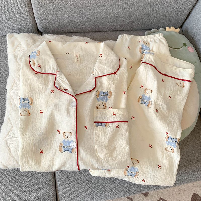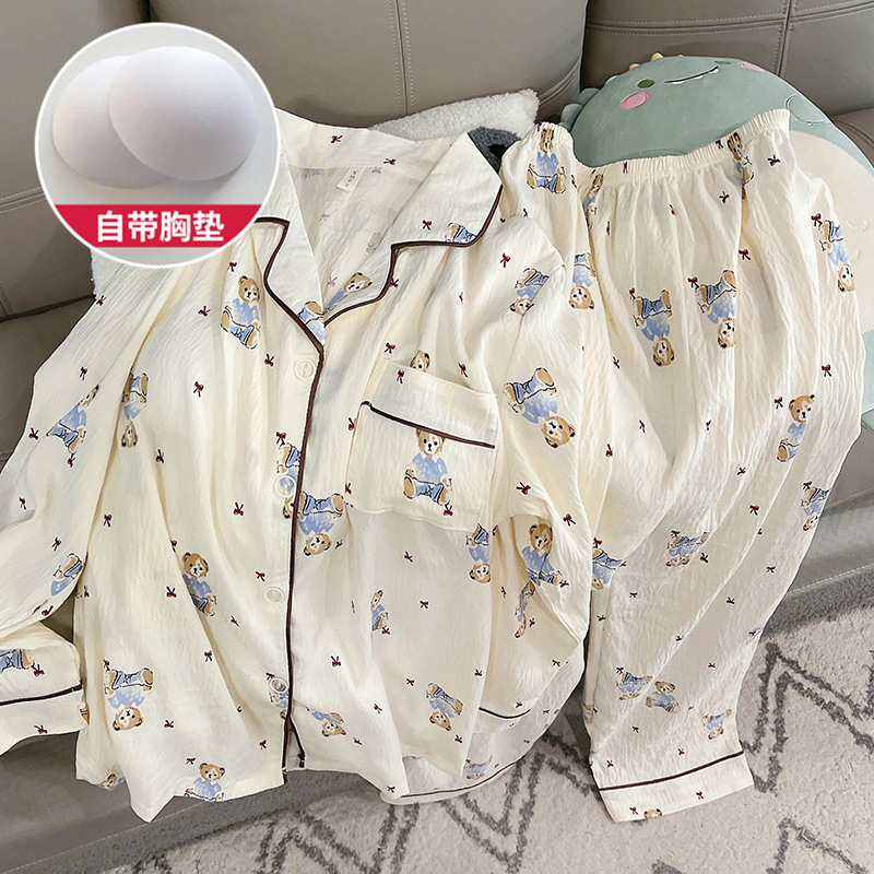 インスタイル日本春、秋、夏の女性用パジャマクマ長袖ズボンクラウドコットン漫画かわいいホーム服セット