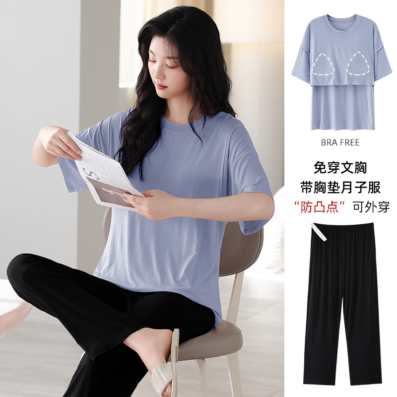 胸パッド付き妊婦パジャマ夏の薄い哺乳月子服出産後に半袖パンツの出産予定を調節できる