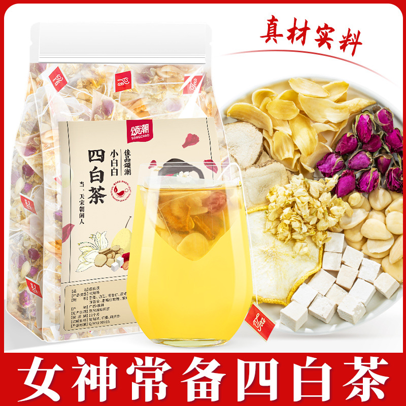 七白茶、墨紅薔薇、白芷、ポリア、ジャスミン花茶、女性用朝C・夜A茶、水に浸して飲む独立したティーバッグ