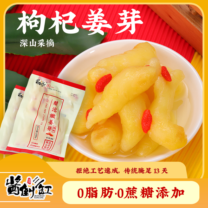 ソースを注ぐ三本のクコの若い生姜の芽 山東の酸っぱい前菜おかず、ご飯と一緒に生姜のスライスを添えて家庭用朝食 200g