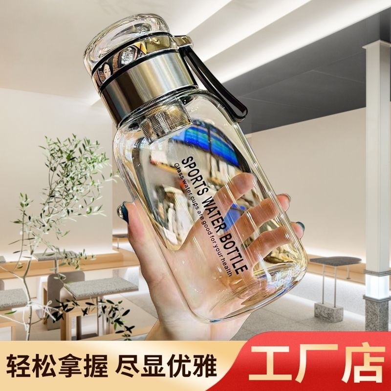 大容量男女トン茶水分離カップ高ホウ素シリコン耐熱ガラス単層水カップカップセット付き茶卸売り