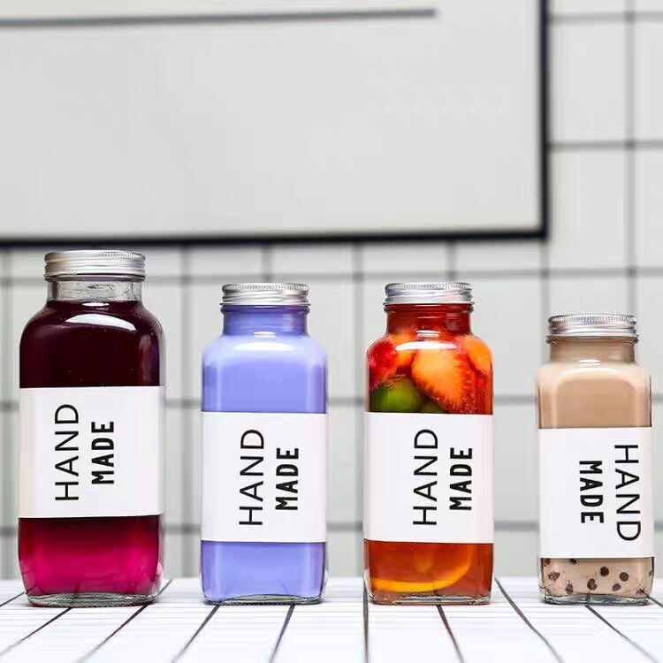 新しい250mlコーヒーミルクティージュース飲料長方形瓶牛乳瓶蓋付き携帯ガラス飲料瓶