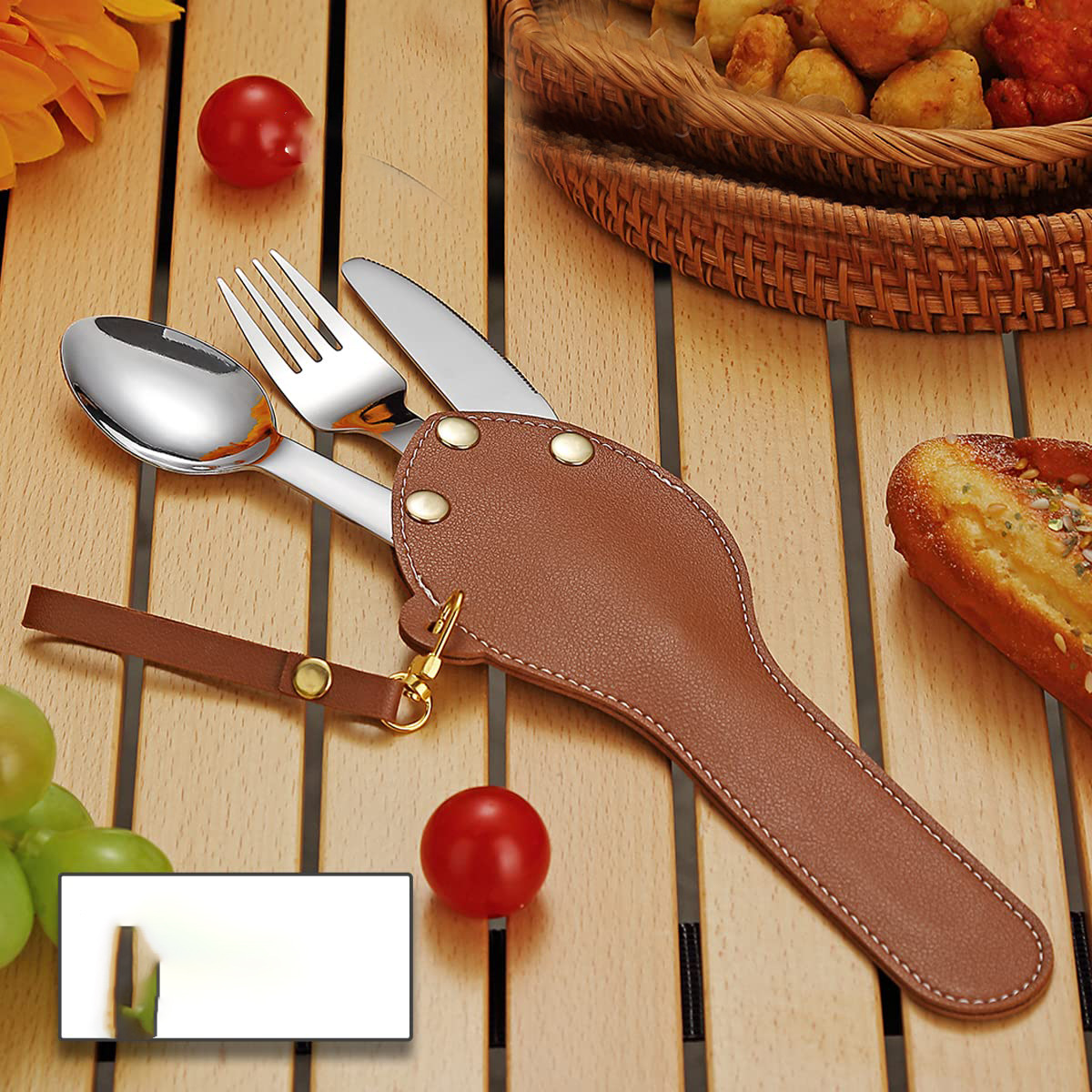 屋外キャンプ用ステンレス製カトラリーレザーバッグナイフフォークスプーン携帯収納バッグ屋外キャンプ用カトラリーバッグ