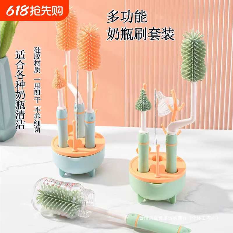シリコーンボトルブラシベビーおしゃぶりストローブラシスリーインワンボトル洗浄ツール収納セットスポンジ卸売