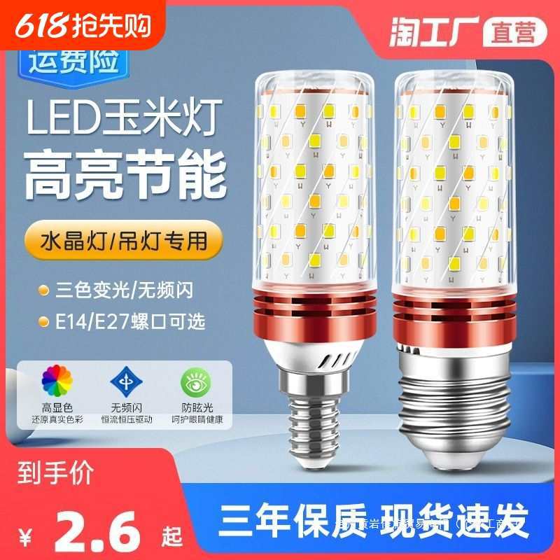 LED 電球 E14 小ネジ E27 コーンランプ家庭用照明超高輝度クリスタルシャンデリア 3 色調光フェスティバル卸売
