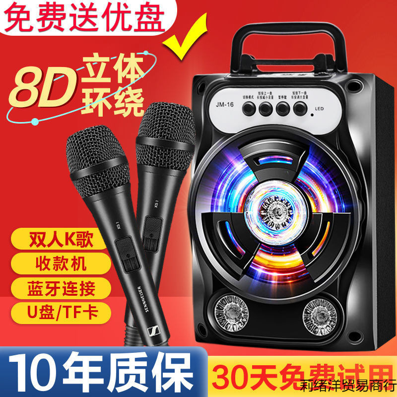 ワイヤレス Bluetooth スピーカーマイクカラオケ屋外大音量ホームサブウーファーオーディオ新しいスクエアダンスポータブル