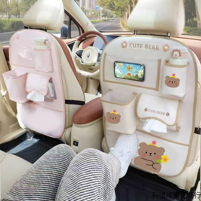 車のアンチキックパッドリアユニバーサルかわいい漫画車の安全シート耐摩耗パッド多機能収納保護パッド