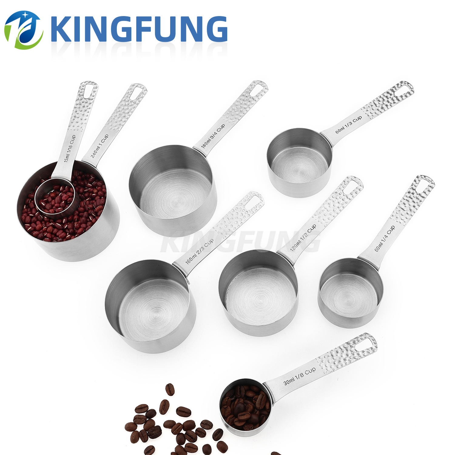 クロスボーダーステンレス鋼槌目8点セット計量カップ計量スプーンスケール付き家庭用計量カップセット調味料スプーンベーキングツール