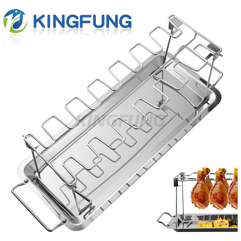 ステンレス製鶏脚焼きグリル携帯折り畳み焼きグリルBBQ戸外焼き鶏セット底付き皿付き焼肉棚