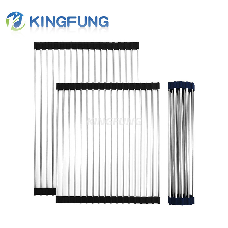 シリカゲルの水切り棚の台所の多機能の物置棚の水槽のカーテンの碗の箸の棚の304ステンレスの折り畳みの濾過棚
