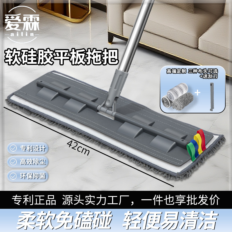 Ailin ハンズフリー家庭用大型フラットシリコンモップ、怠け者向け、省力木製床専用モップ、新しいフロアモップ