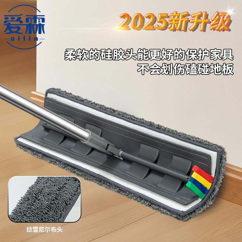 2025 シェニールフラットシリコンモップ家庭用大型怠惰な省力木製床特殊モップ新しいフロアモップ