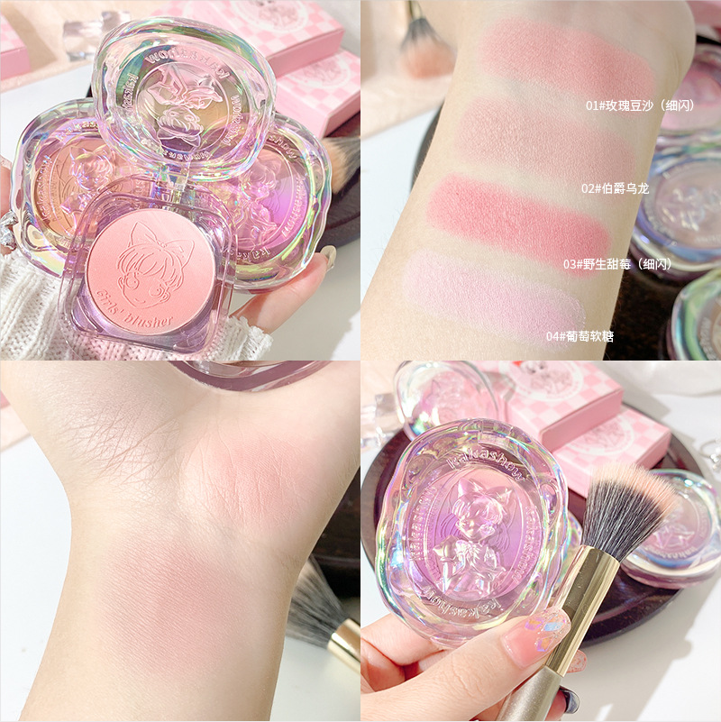 Kakashow少女の心のグラデーションの頬紅のつやつやした光の細い閃光の偽のすっぴんのかわいい元気な少女の裸の化粧の2色の紅
