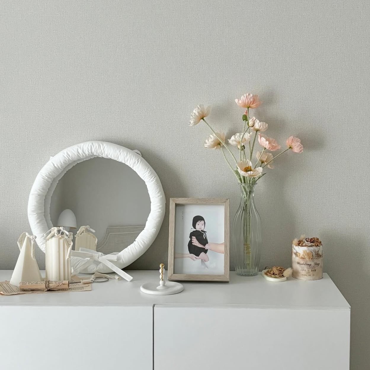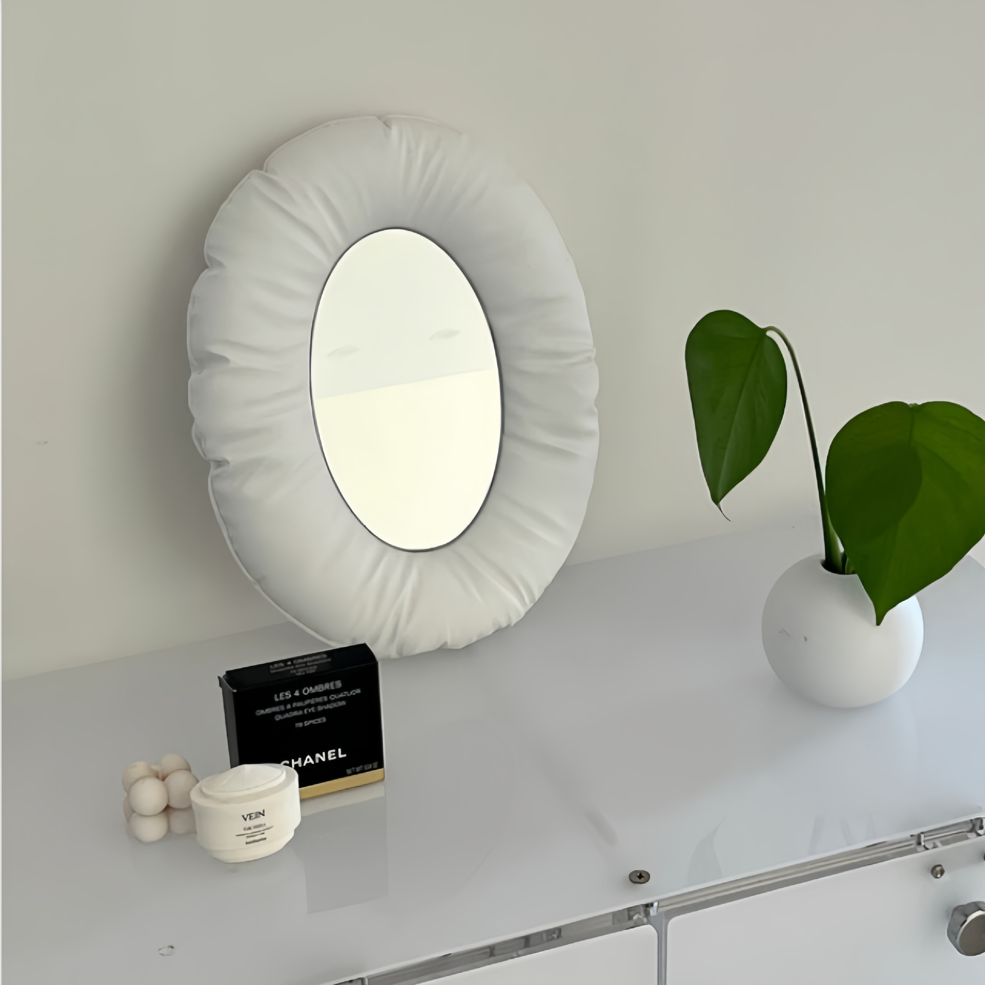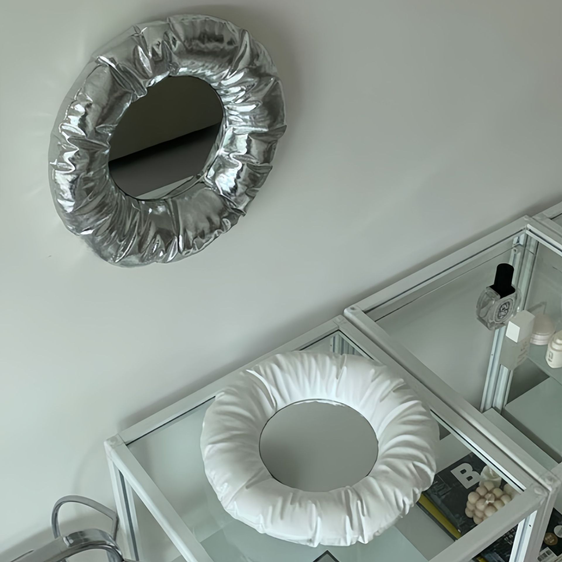 韓国版ins柔らかい綿布芸鏡はシンプルな白黒純色の家庭装飾鏡化粧鏡を吊るすことができる