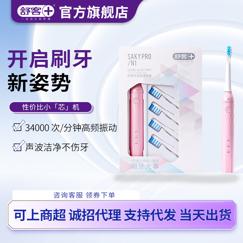 下流の同じタイプの舒客音波電動歯ブラシカップルの成人は、自信を持って清潔な電動歯ブラシを持っている
