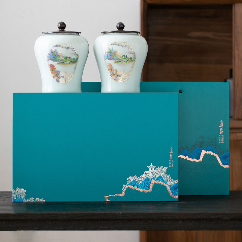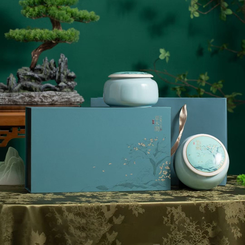 春茶新中国式陶磁器茶葉缶ギフトボックス空箱包装箱通用半斤緑茶白茶茶倉龍井