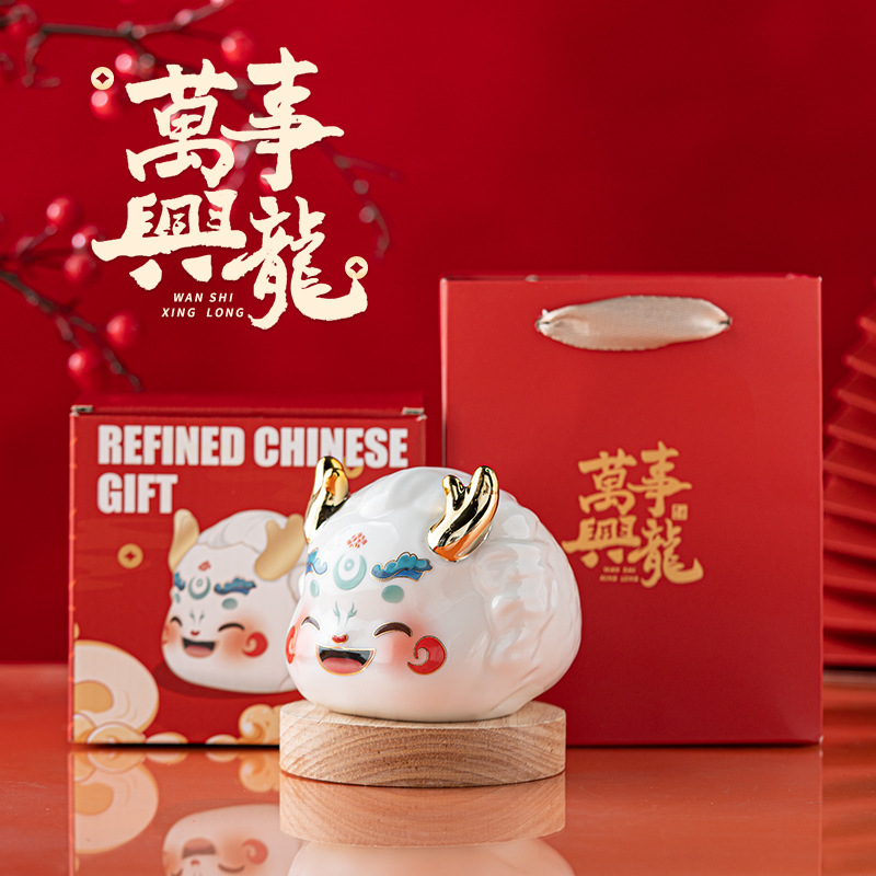 新年プレゼント生肖龍創意国潮置物銭龍貯金箱マスコット手作り陶磁器貯金箱