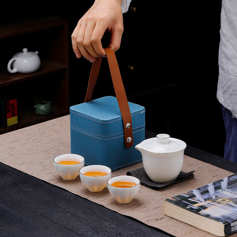 羊脂玉磁器パンダ快客杯一本二杯携帯旅行工夫茶器セット陶磁器家庭用屋外