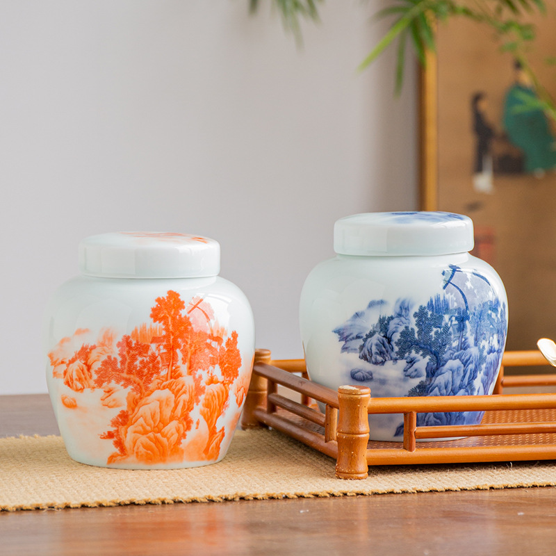 簡単なお茶缶陶磁器缶の中号密封茶葉包装礼箱共通包装緑茶紅茶印刷ロゴ