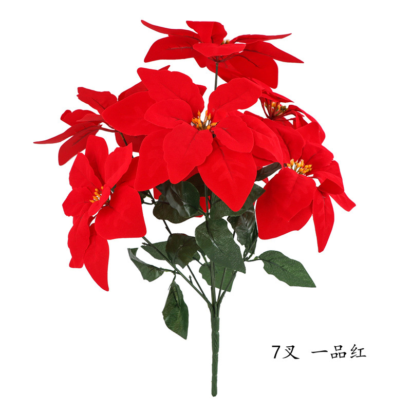 模造花束ベルベットクリスマス花造花一品赤絹花園芸鉢植えクリスマス花絹花スポット卸売り