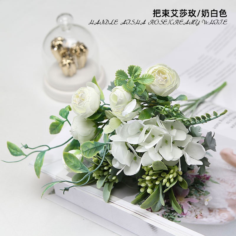 北欧insシミュレーション茶薔薇刺繍結婚祝い手は花束結婚式撮影道具花芸家庭装飾