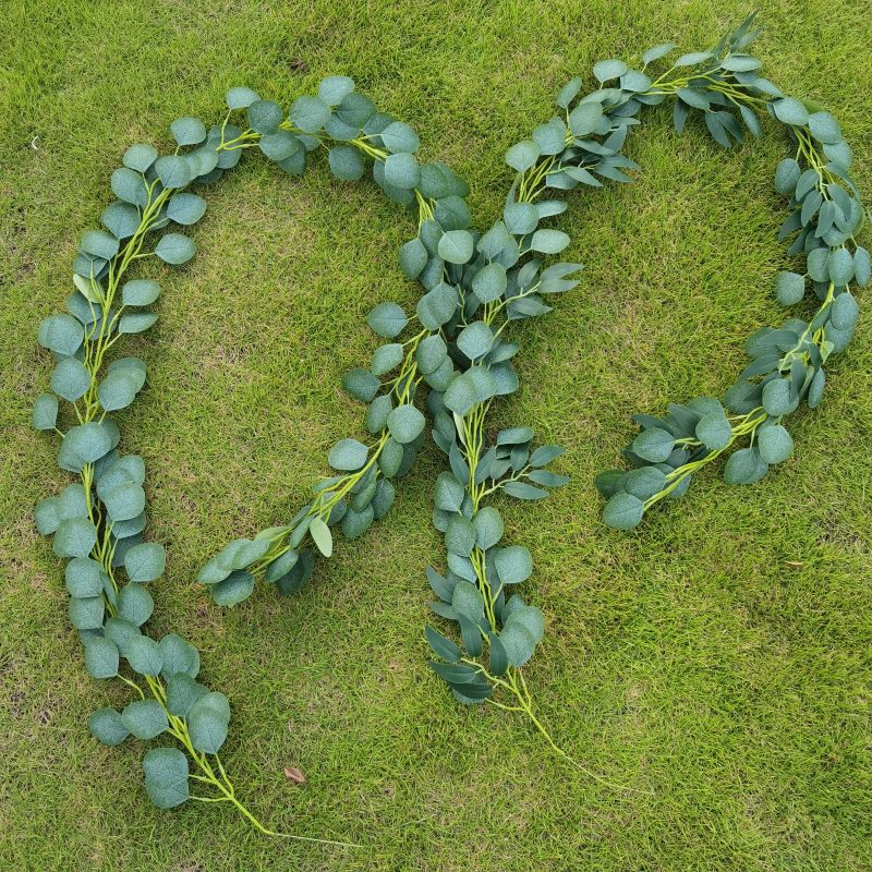 現物シミュレーションユーカリの葉の藤の金の葉の丸い葉ユーカリの葉の結婚式の布展の道は藤の花の藤を飾ります。