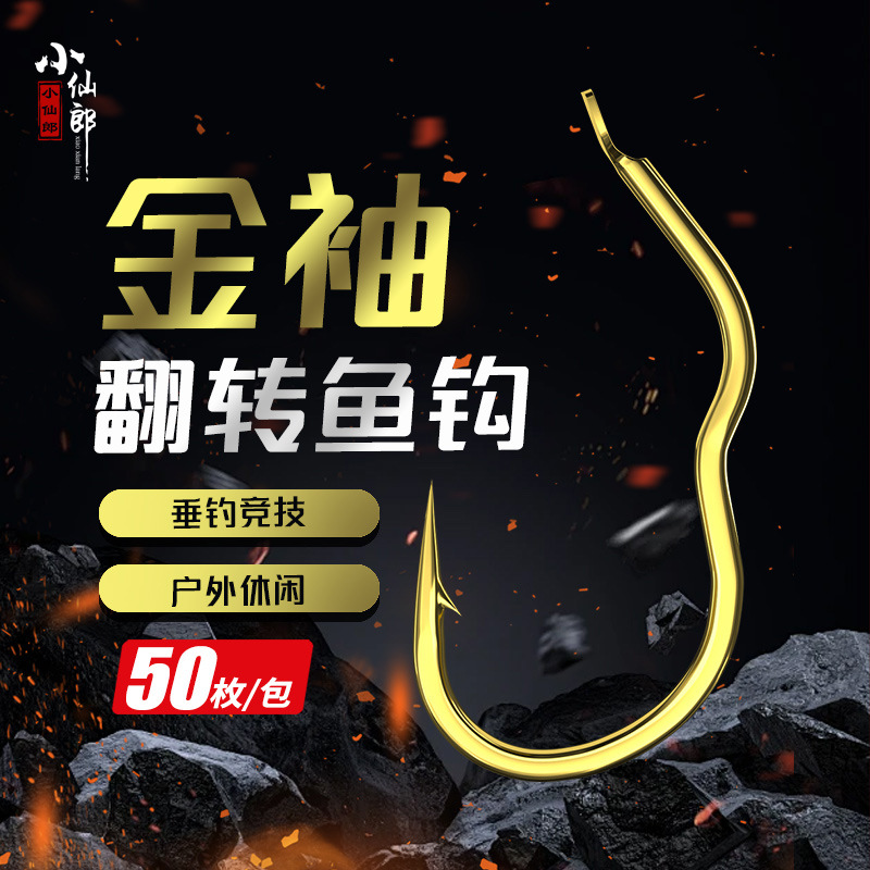 【50個】ゴールドスリーブ フリップフック シングルフック バルク 脱ぐ防止 ランニングフィッシュ 李火明 フィッシュフック 自動刺し魚 Xiaoxianlang