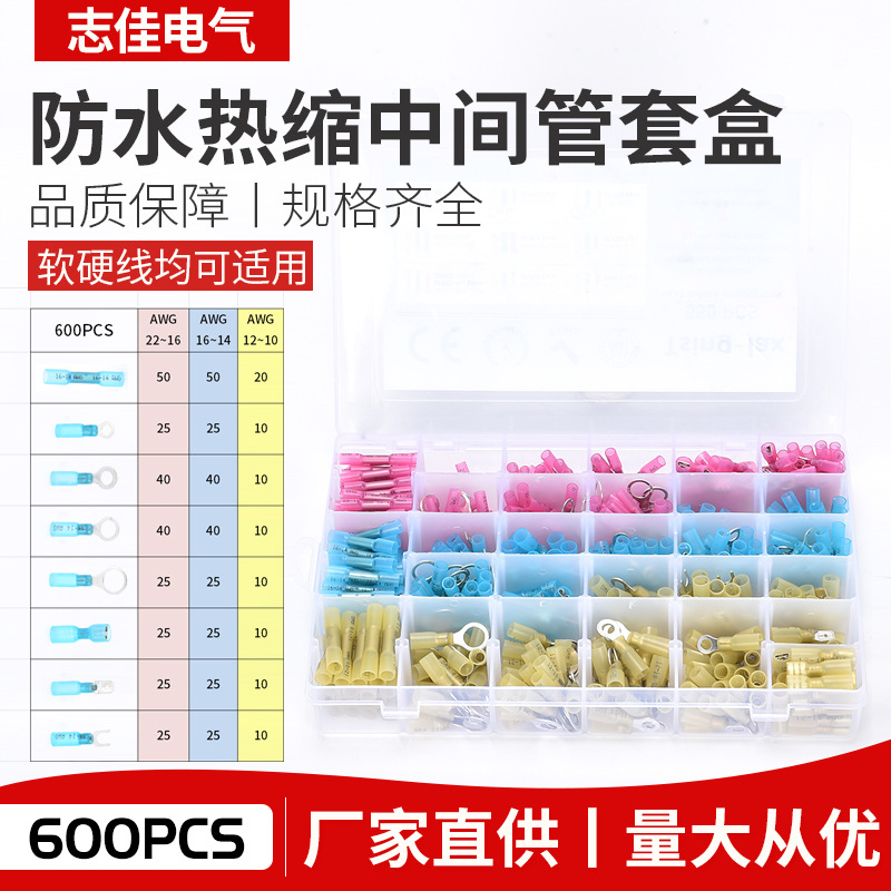 国境を越えたソース熱収縮端子600セットの箱冷圧端子rv端子熱収縮管熱収縮端子