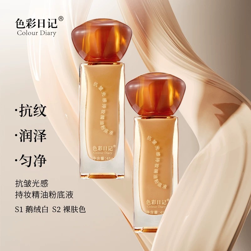 色日記抗シワ感化粧精油ファンデーションカバー保湿持続オイル女性