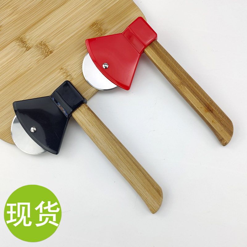 ステンレス円形ローラーピザナイフキッチンベーキングツール単輪ピザカッター竹柄斧介餅ナイフ