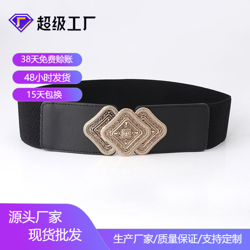 オーダーメードのベルトの越境ファッションの女性の復古の彫刻の花は腰の封のスカートの装飾の弾力性の緩めの広いベルトを掛けます。