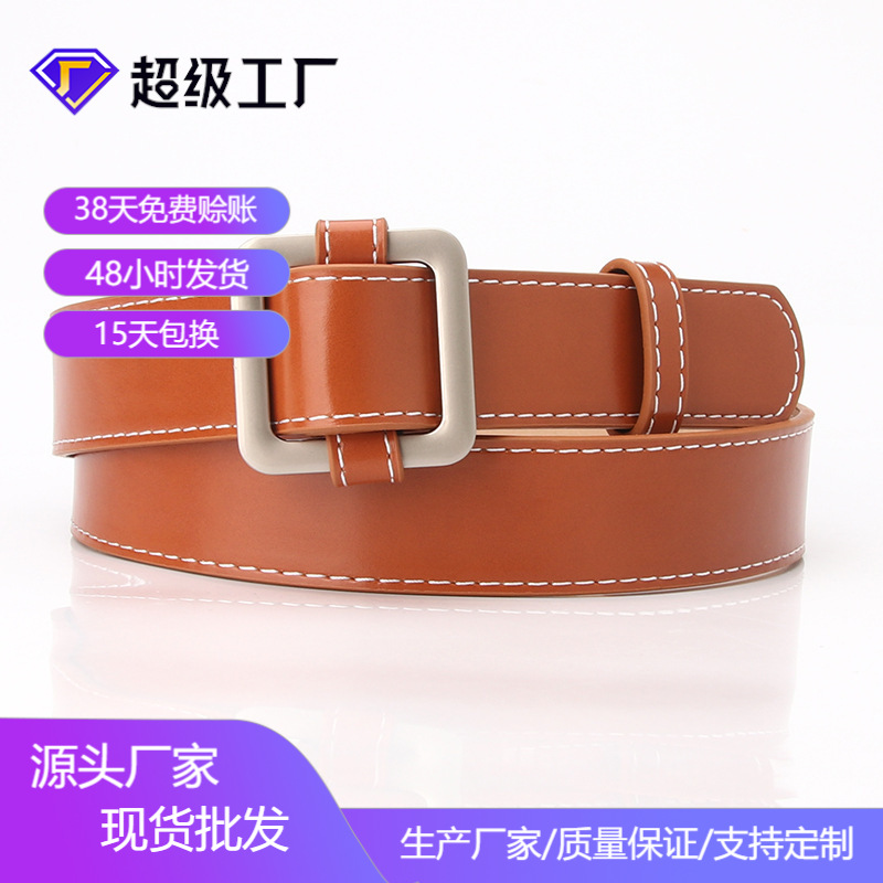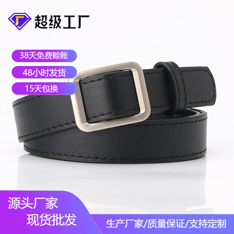 カスタム热い贩売レディースベルト穴なしスクエアバックル模造皮シンプルな女の子キュロット装饰ベルトヨーロッパ版ファッション风