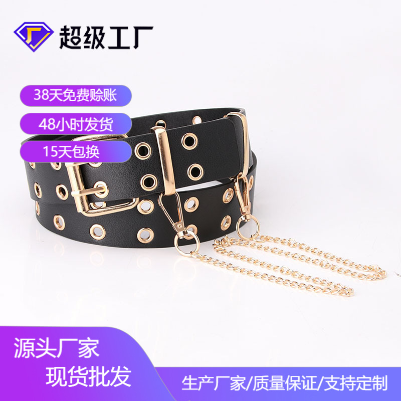 欧米のネットの赤い金の全穴の女性のベルトのヒップホップパンクの風の街頭のファッションのクールなinsの風のズボンはチェーンのベルトを持ちます。
