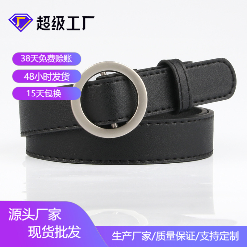 オーダーメードレディースファッションpuラウンドバックル穴なしシンプルなベルト学生ジーンズのベルト