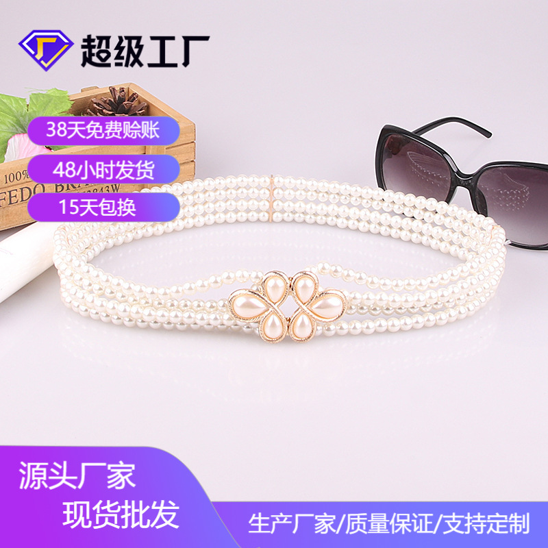 オーダーメイドのデザインがよく売れています。ファッション真珠に花の腰チェーンのワンピースを入れてベルトを飾ります。女性8127