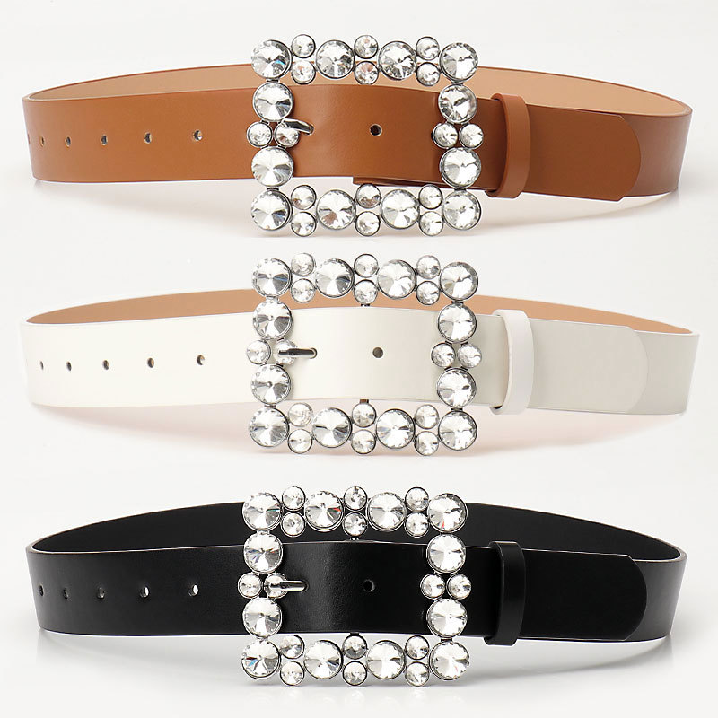 新作スイートで軽やかな高級感漂う日韓風レディースベルト、おしゃれな装飾ベルト、女性用ストーン柄バックル付きレザーベルト、レディース卸売