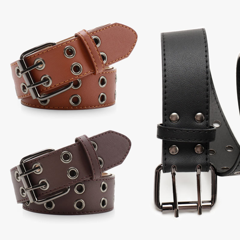男性と女性のためのクロスボーダーホットガールベルト、パンクスタイルのパンチフリー二列アイレットベルト、女性用多用途ジーンズドレスベルト