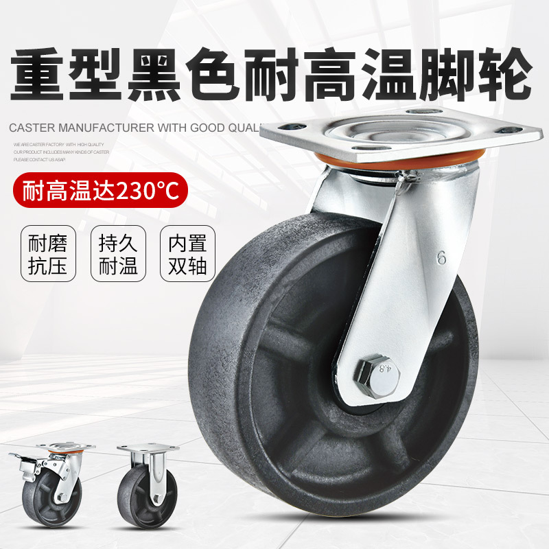 工場直販4インチ5インチ6インチ8インチ黒色ナイロン耐高温キャスター二重軸受車輪オーブン車輪