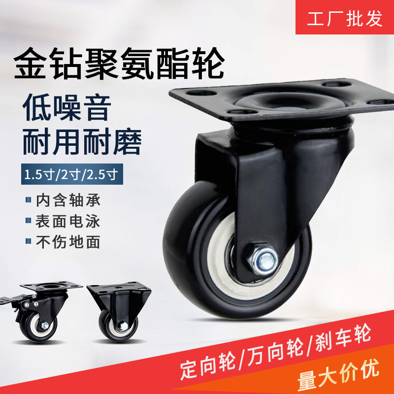 1.5/2インチ2.5インチ金ドリルキャスターポリウレタン万能車輪黒色小車輪工業家具ブレーキ付き車輪