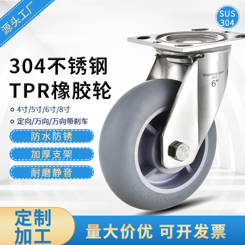 重型ステンレス静音キャスターグレーtpr車輪4インチ5インチ6インチ8インチ304ステンレス鋼万能車輪