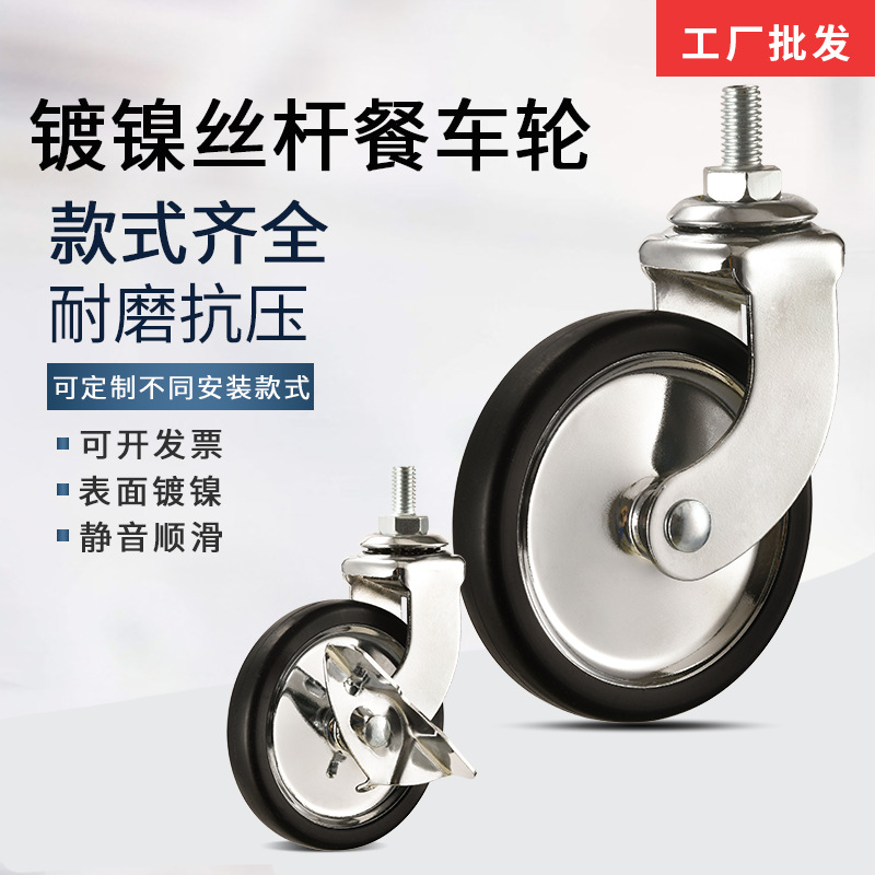 卸売り3インチニッケルメッキスクリュー食車輪静音pp万向輪ホテルブレーキホイール単辺輪カートホイール
