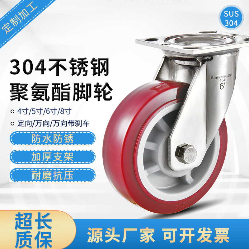 卸売り重型ステンレスキャスターsus304万向輪棗紅双軸受車輪4インチ5インチ6インチ8インチローラ