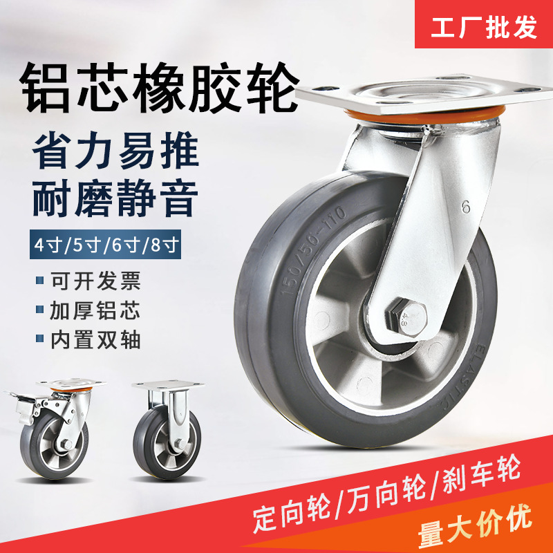 4寸5寸6寸8寸重キャスター静音弾力手押し車車輪棚アルミ芯ゴム万向輪ローラー