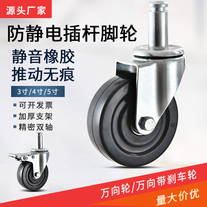3インチ4インチ5インチ黒色帯電防止キャスター差込棒万向輪リーン管食堂車棚輪導電車輪