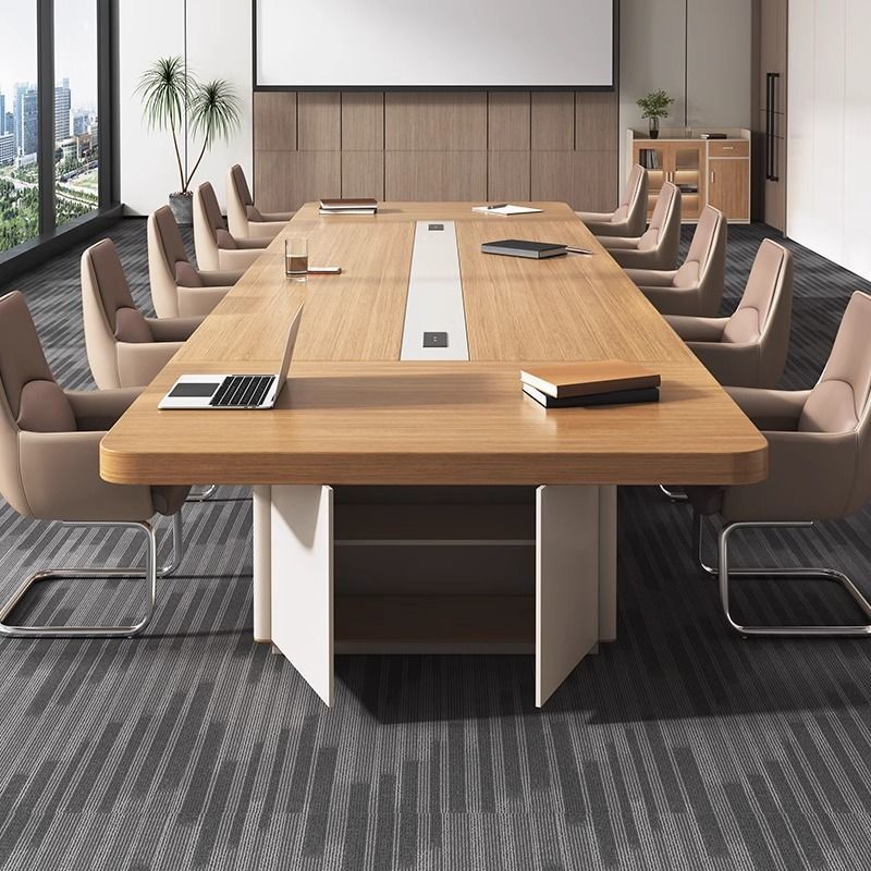 シンプルモダンな高級大型会議テーブルオフィス商談受付テーブルと椅子の組み合わせ塗装会議テーブルロングテーブル