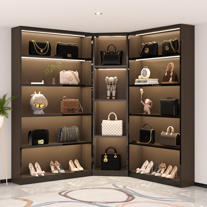 オレンジのシンプルな展示ホールキャビネット衣料品店無垢材アンカーキャビネットディスプレイラック靴バッグライブルームディスプレイキャビネット