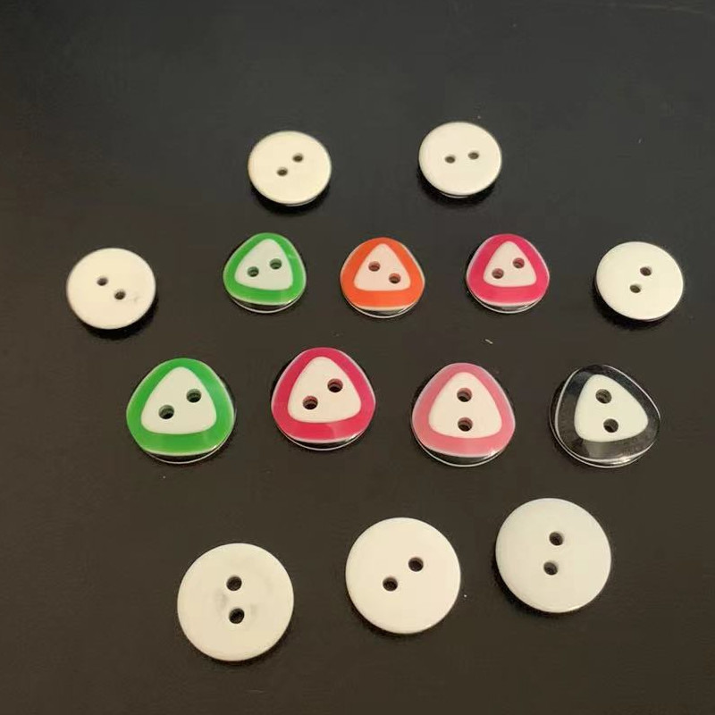 小额批发义乌纽扣圆形有眼儿童树脂圆三角形多色钮扣