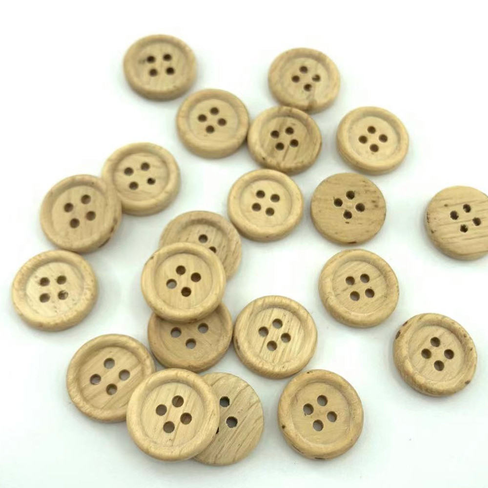 批发圆形4眼细边扣手工儿童钮扣本色原木天然木头扣木质纽扣