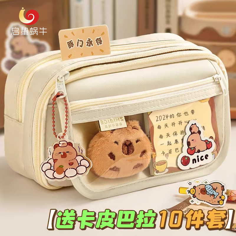 新しいカピバラ筆箱 小学生女子、中学生女子向けの見栄えの良い大容量筆箱です。
